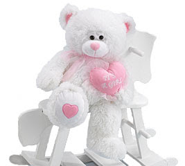 Adorable super soft white plush bear holding a baby pink heart outlined in lace that says "It's a Girl." 22 High.