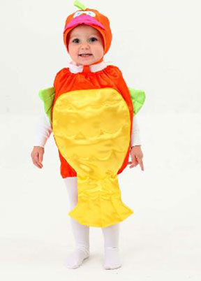 This little fish costume from Mullins Square is made with quality materials and detailed it appliqué. Your little one will be a Halloween star! Tights and turtleneck not included, fits babies up to 25lbs.