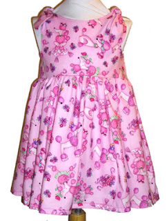 100% super soft cotton sundress has pretty pink princess poodles all over! Dress has full skirt and tie shoulders.