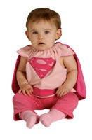 Supergirl infant costume with movable cape. Romper with under leg, snap closure. Infant size (1-2).