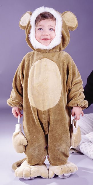 You'll go bananas for this cutie. One piece plush jumpsuit with attached hood and vest. Infant size 12-18 months.