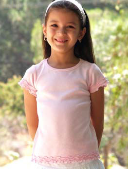 Little Girl's Crew Neck Lettuce Edge Short Sleeve Top