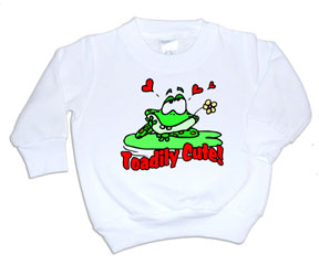 It comes in sizes infant to youth sizes 14-16, and is perfect for Valentine‘s Day! White with green frog and red hearts.