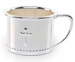 This silver plated cross cup is a lasting keepsake for a baby. Measures approx 2" tall.