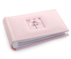 This photo album is perfect gift for a baby. Mom will enjoy showing off her favorite photos in this beautiful album. Vinyl album holds 88 4x6 photos and has pretty cross charm on the front cover.