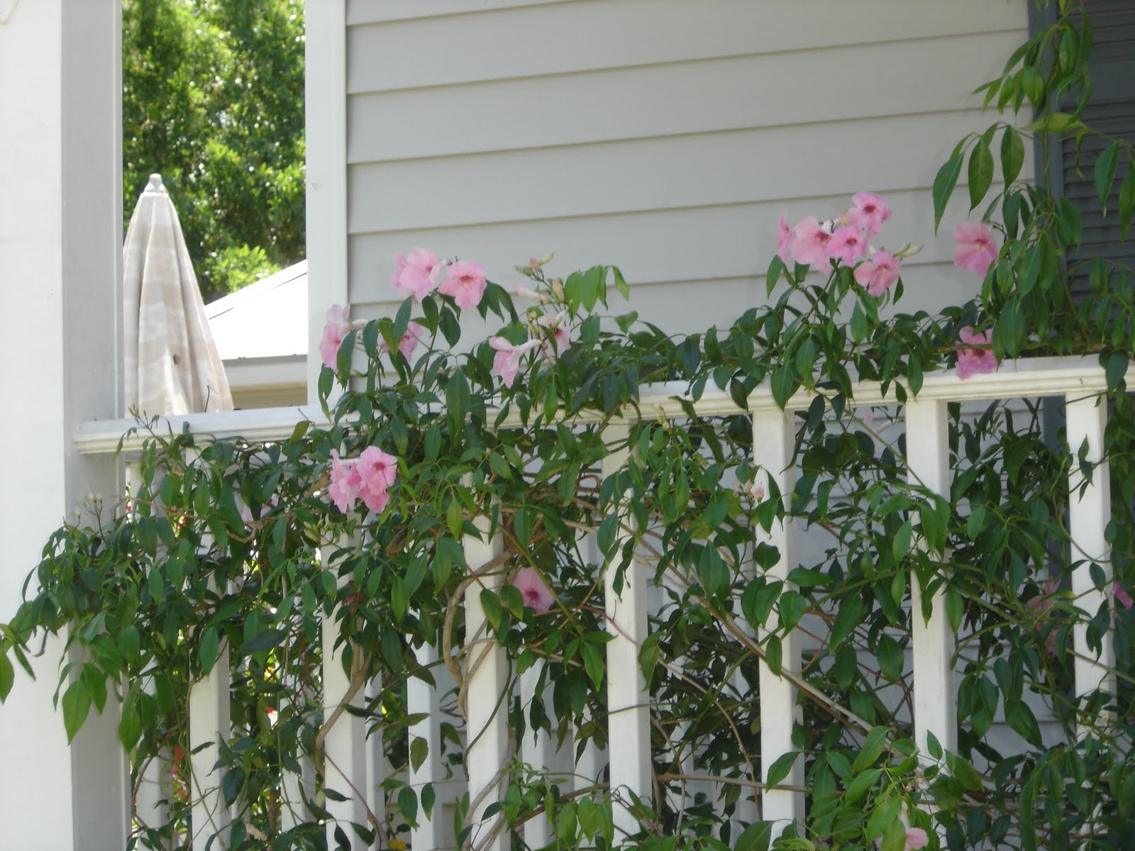 This Brower Vine was started from seed about 2 1/2 years ago. It will makes seed pods with thousands of seeds. I took several seeds and started them in small pots. As they got larger I moved them into a larger pot. When they were about a foot tall I planted them in the ground on each side of my front porch. The one on the NW side of the house started off well, and bloomed and bloomed. I live in Florida, and the one in this picture was planted on the NE side of the house. The first year it didn't do very well, but now it seems to be quite happy.