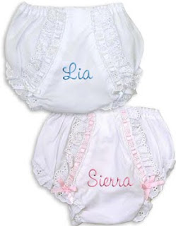 Oh so cute for those sweet little girls! Super cute with a dress, sun top, tee, or even by themselves! These fancy pants with eyelet trim are 100% cotton and have either pink or white eyelet trim. Choose embroidery color and have child's name added for an extra special baby gift!