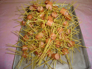 My daughter saw this on a website and thought it would be fun for the kids. I don't know what the real name is, but they look like little creatures to me so I called them Hotdog Creatures.