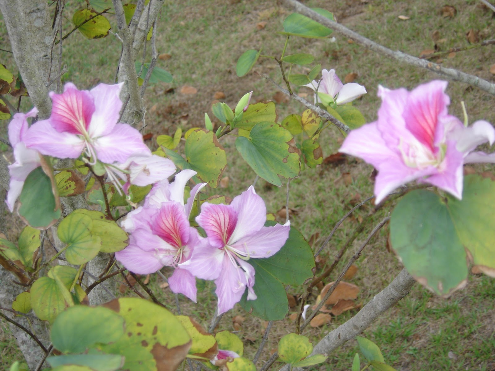 I am most proud of my Orchid tree since I planted this from a seed. Too many of the leaves have brown on them, and there would be more flowers on it if I had fertilized it. This is not in full bloom. There are still lots of buds coming out on this tree.